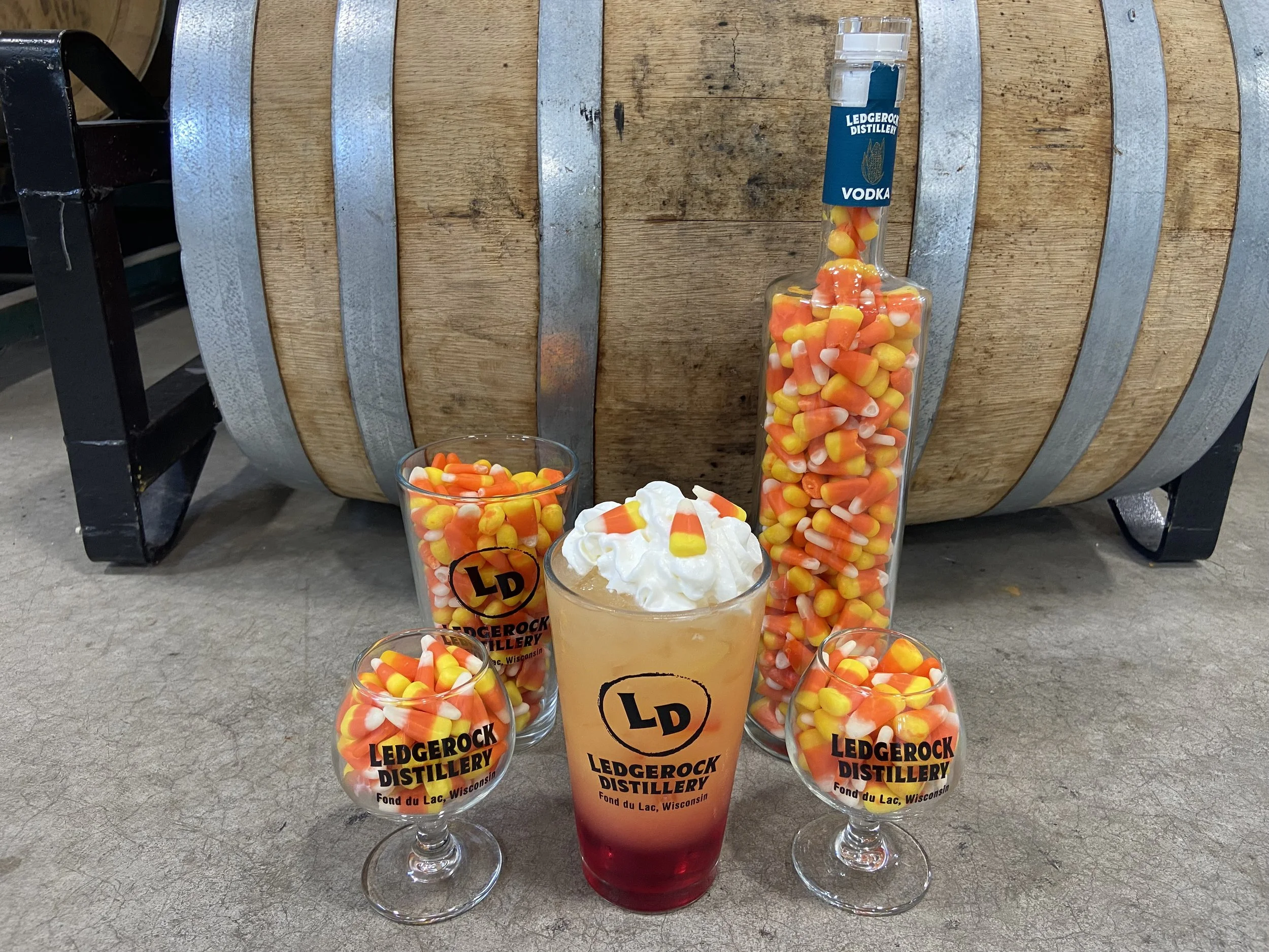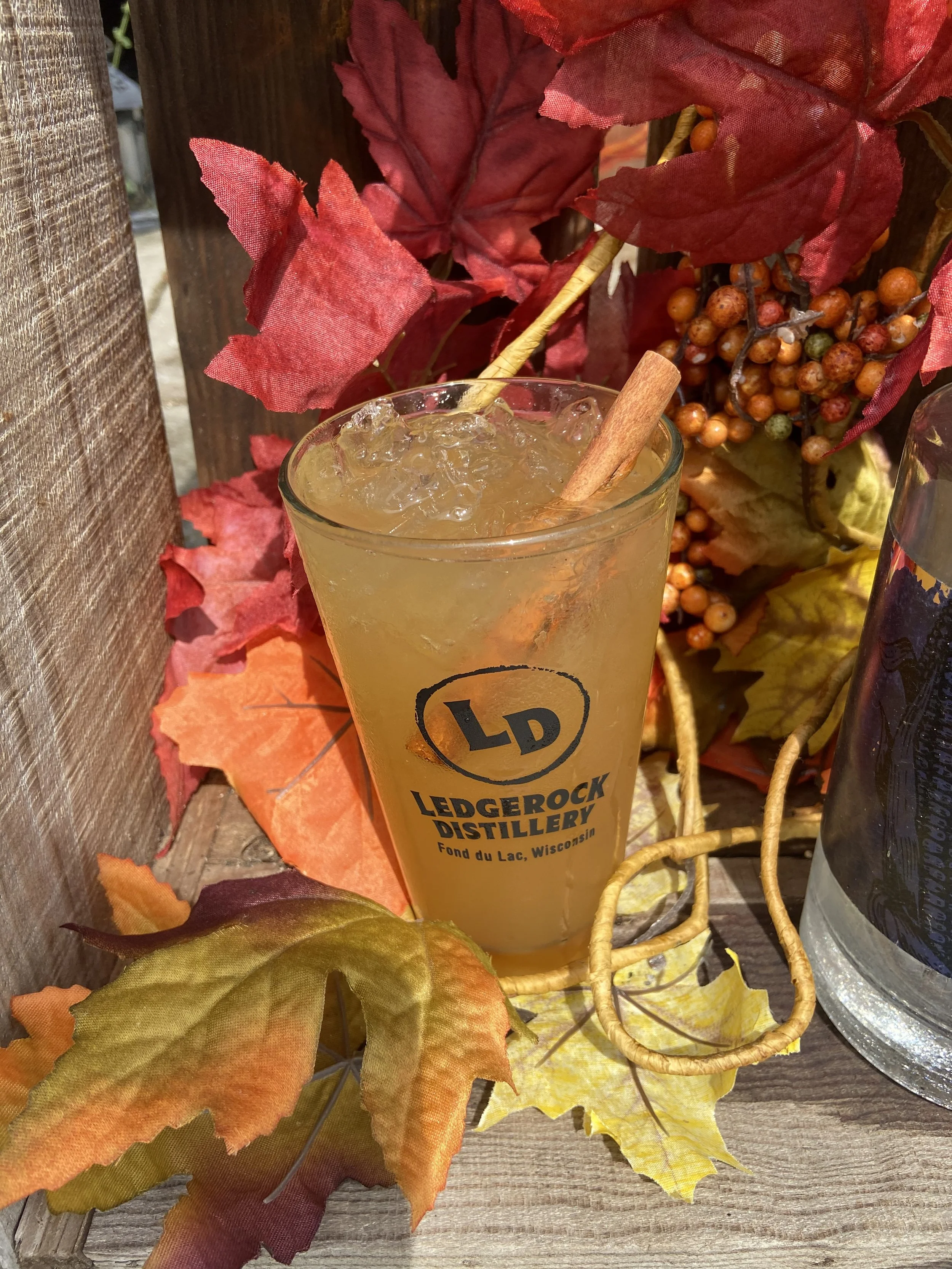 In a glass of ice add Ledgerock Vodka, caramel syrup, apple cider and apple pie spice. Mix. Enjoy.