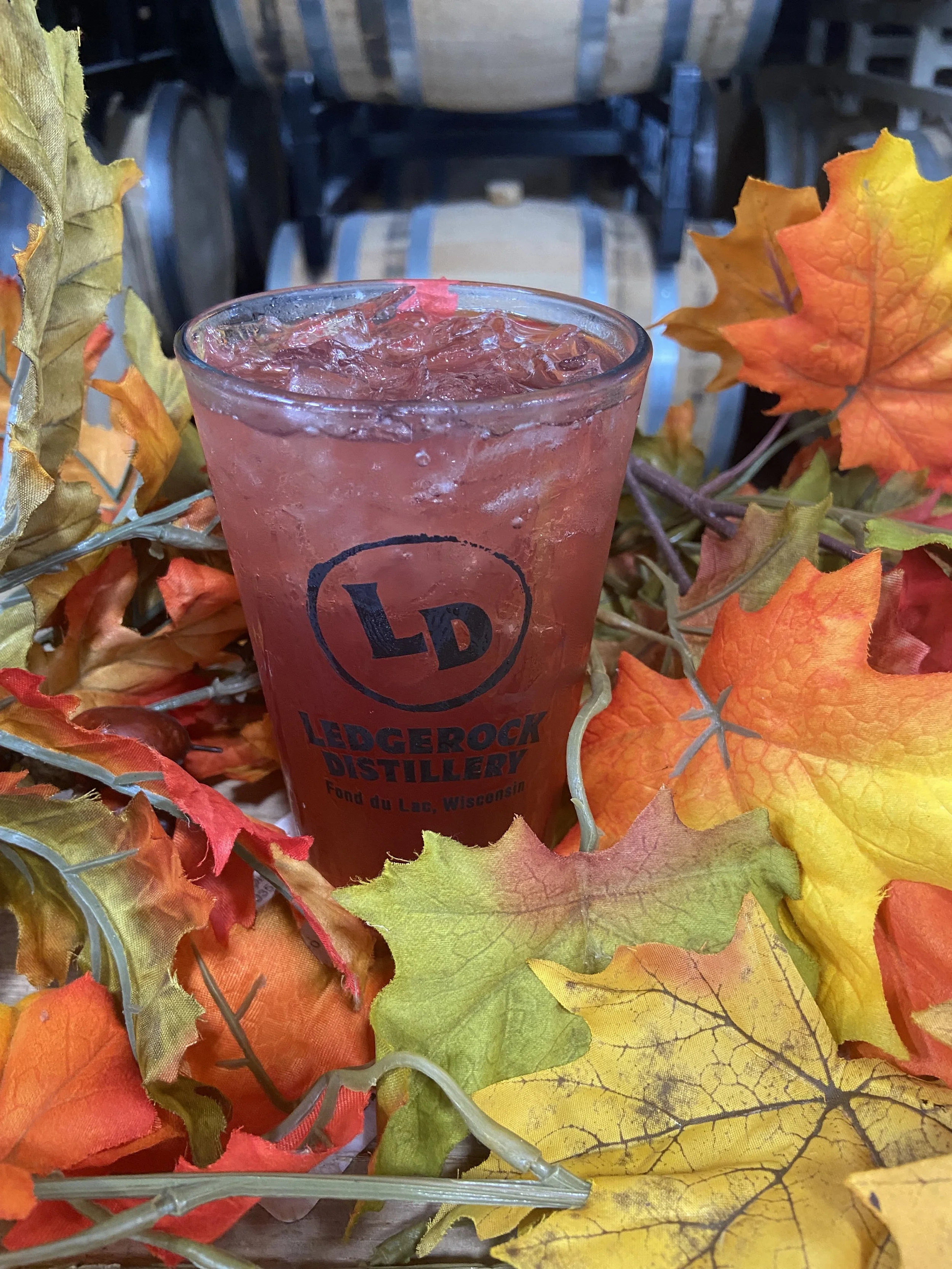 In a glass of ice add Ledgerock Bourbon, Triple Sec, and maple syrup. Top with cranberry juice. Mix. Enjoy.